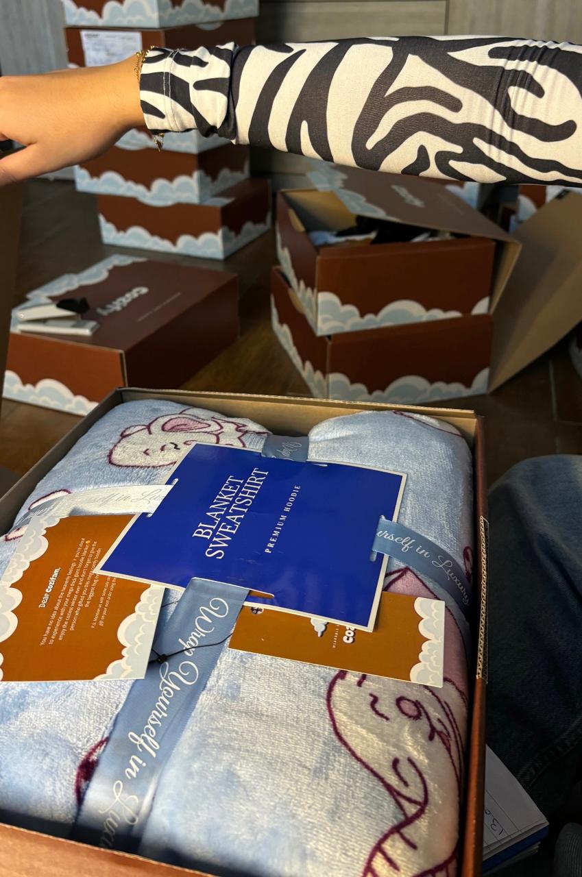 I loved the packaging so much really it grabbed the attention of everybody there and the big surprise was the hoodie blanket you told me how big it was but i didn’t expect such a thing i was surprised too🥰I need one for myself it was a giftt same locationn plz❤️